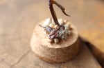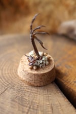 Campana di vetro con all'interno una zampa di merlo essiccata e un vero scorpione (Euscorpius) -ritrovamenti in natura-