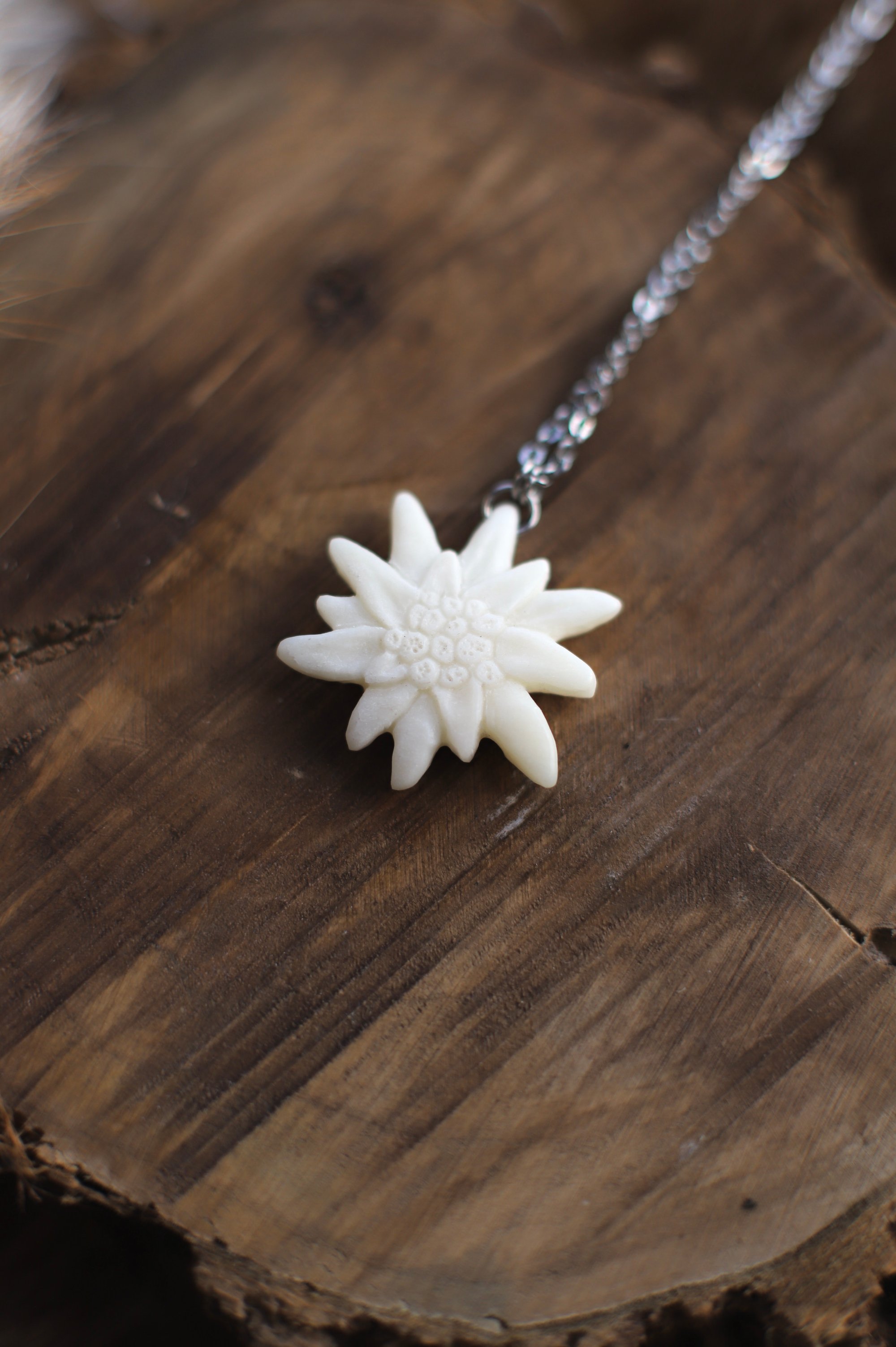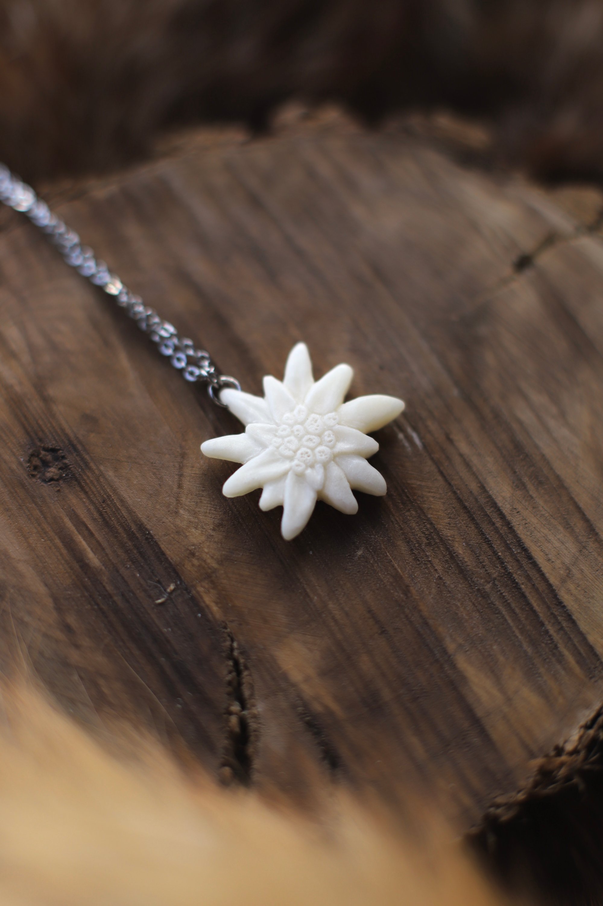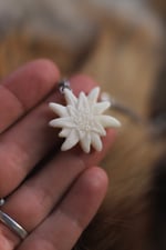 Ciondolo con stella alpina realizzata a mano in osso di cervo.