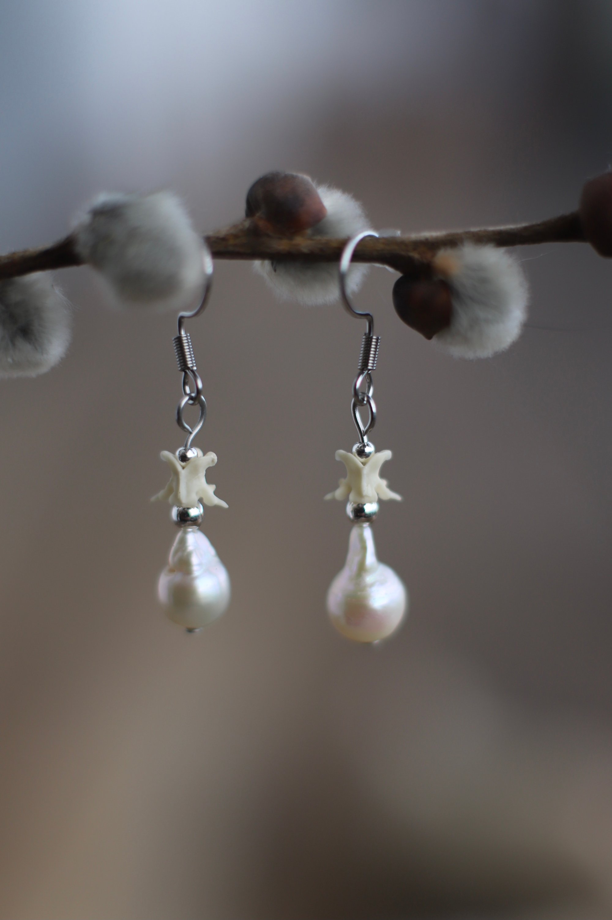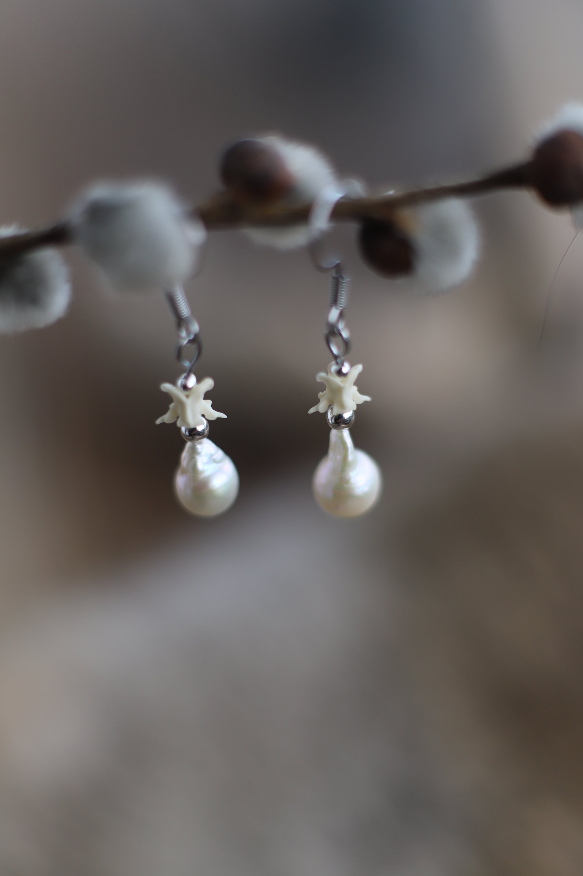 Orecchini Vertebre di serpente e Perle II